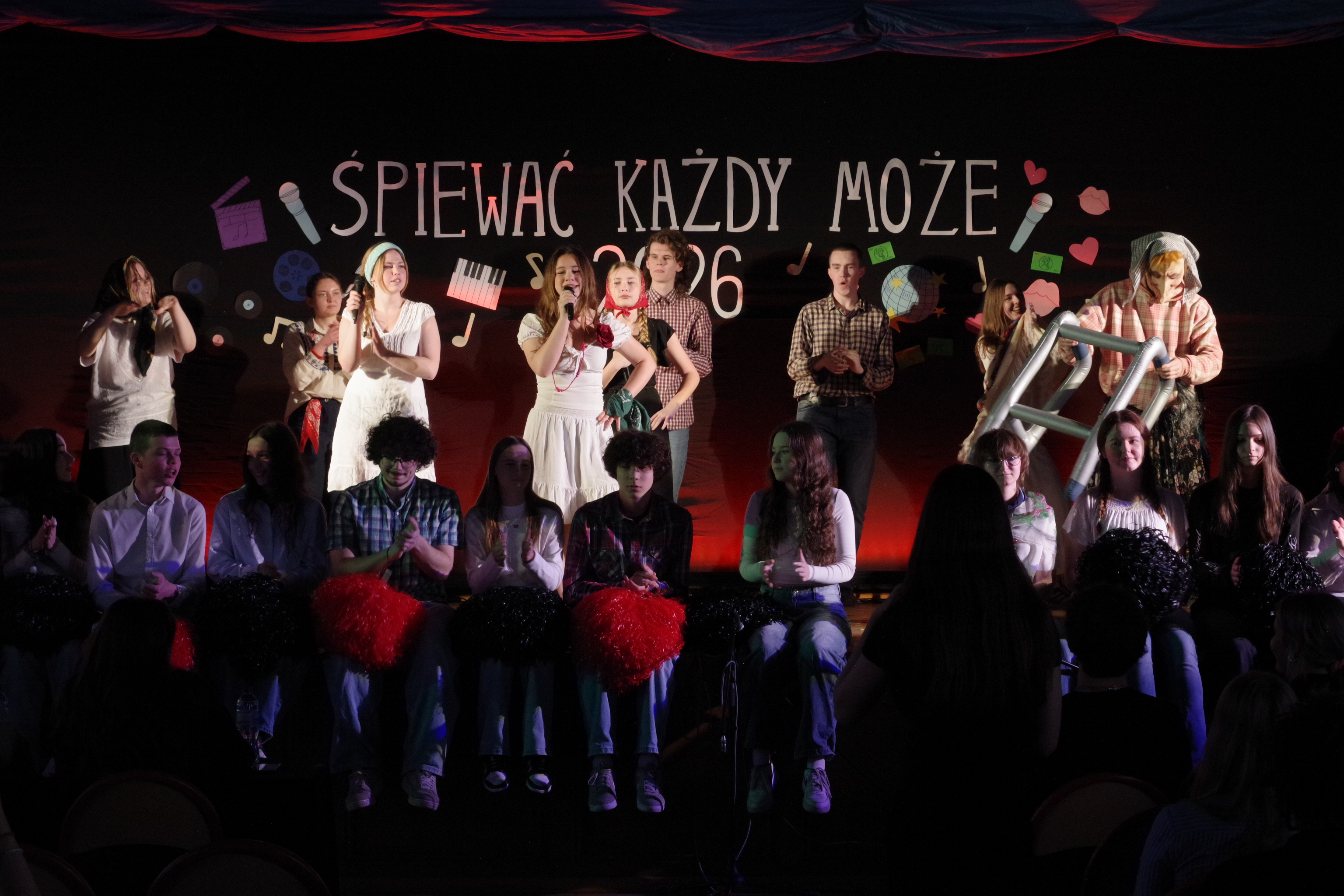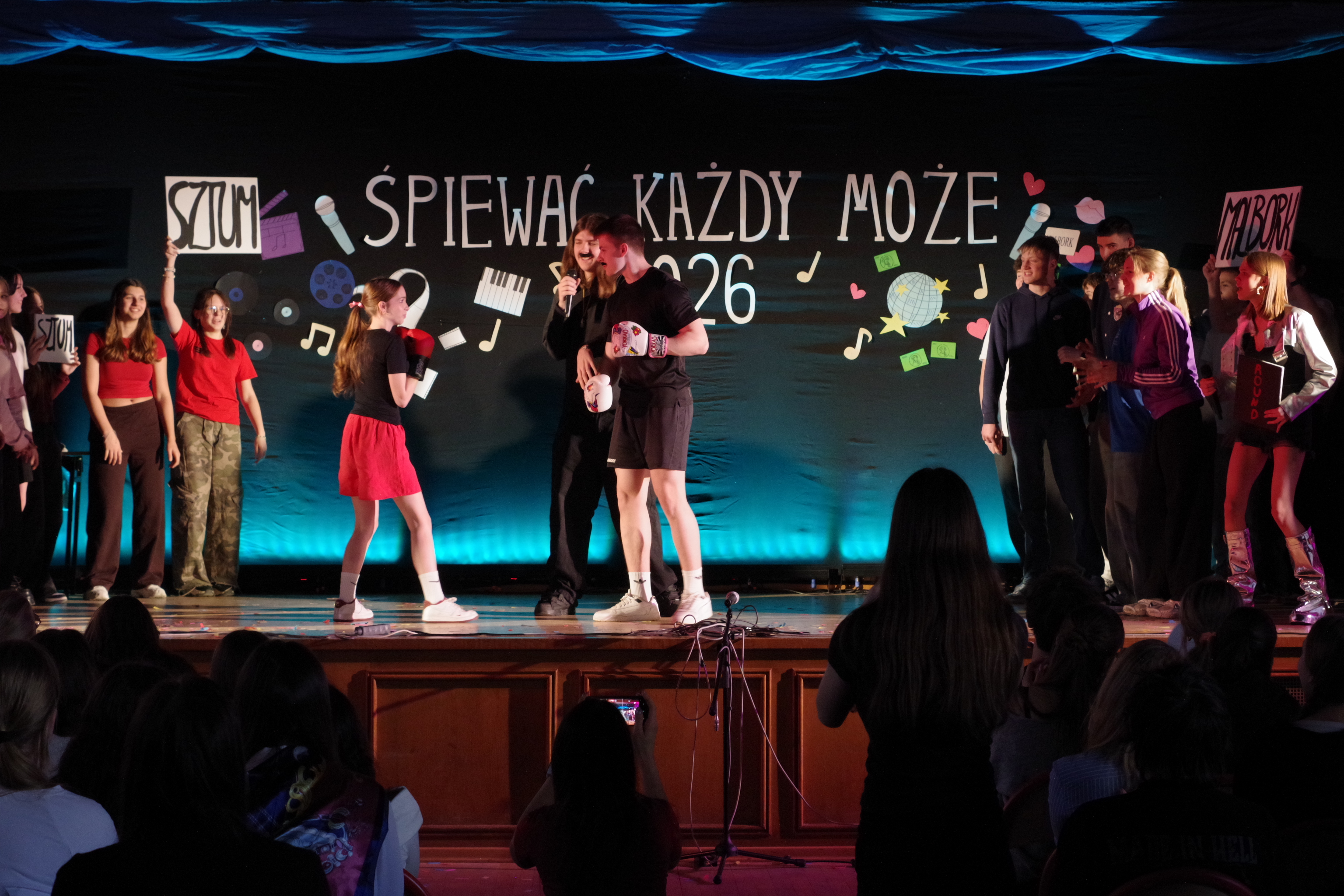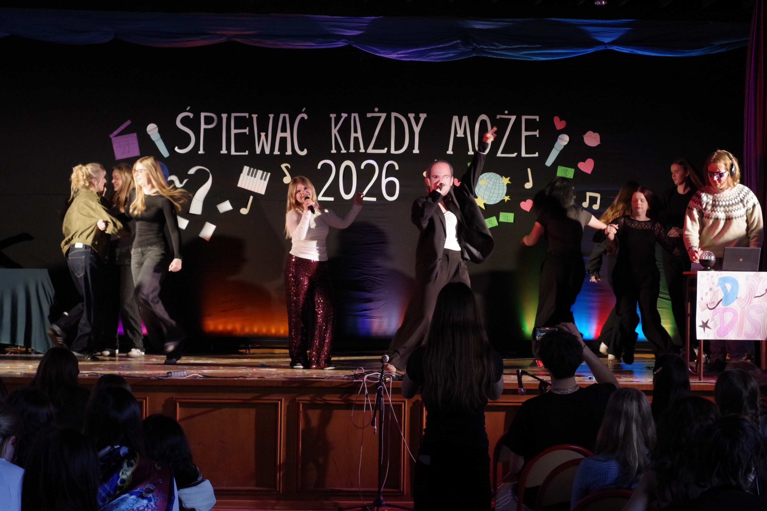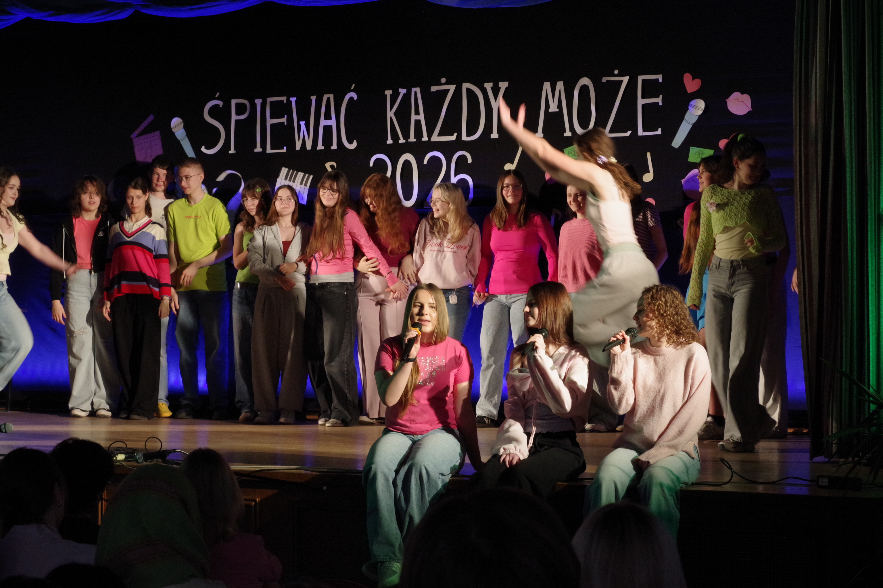 Następnie odbyły się występy uczniów w festiwalu „Śpiewać Każdy Może”, który od lat jest jedną z ulubionych szkolnych tradycji. W tym roku uczniowie zaprezentowali szeroki repertuar – od piosenek filmowych i bajkowych, po znane i lubiane utwory disco polo. Pojawiły się piosenki takie jak „Przekorny Los”, „Mama Ostrzegała”, „Eye of the Tiger” czy „Shake it off”.  Występy były pełne energii, pomysłowości oraz zaangażowania, a publiczność nagradzała wykonawców gromkimi brawami.