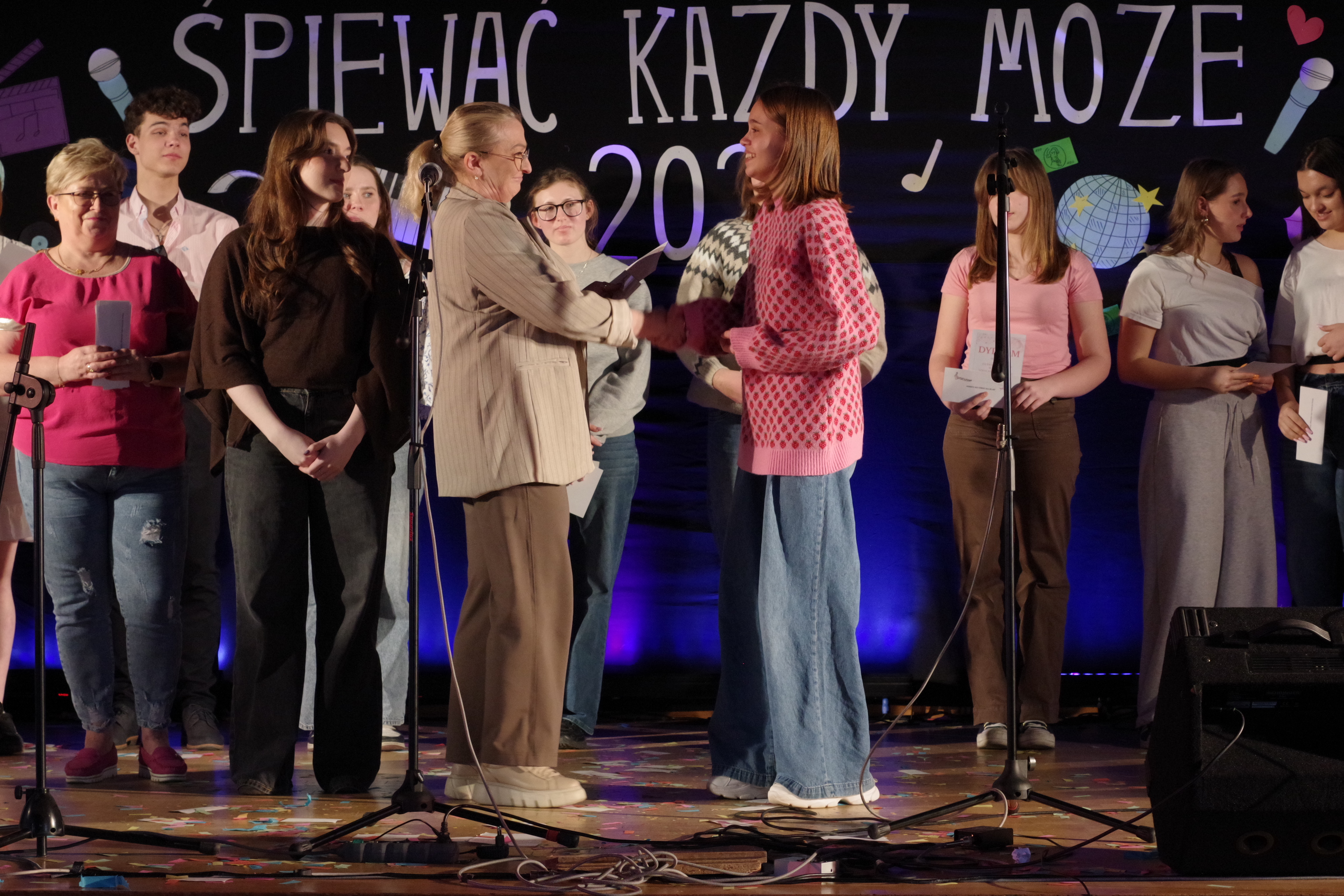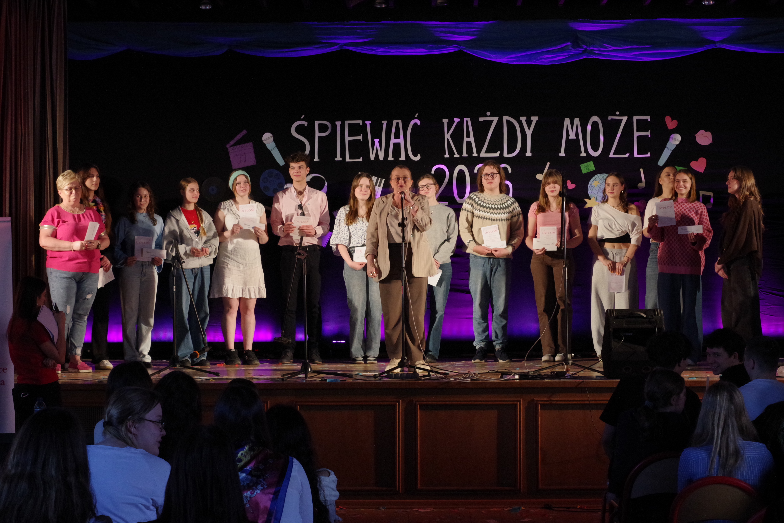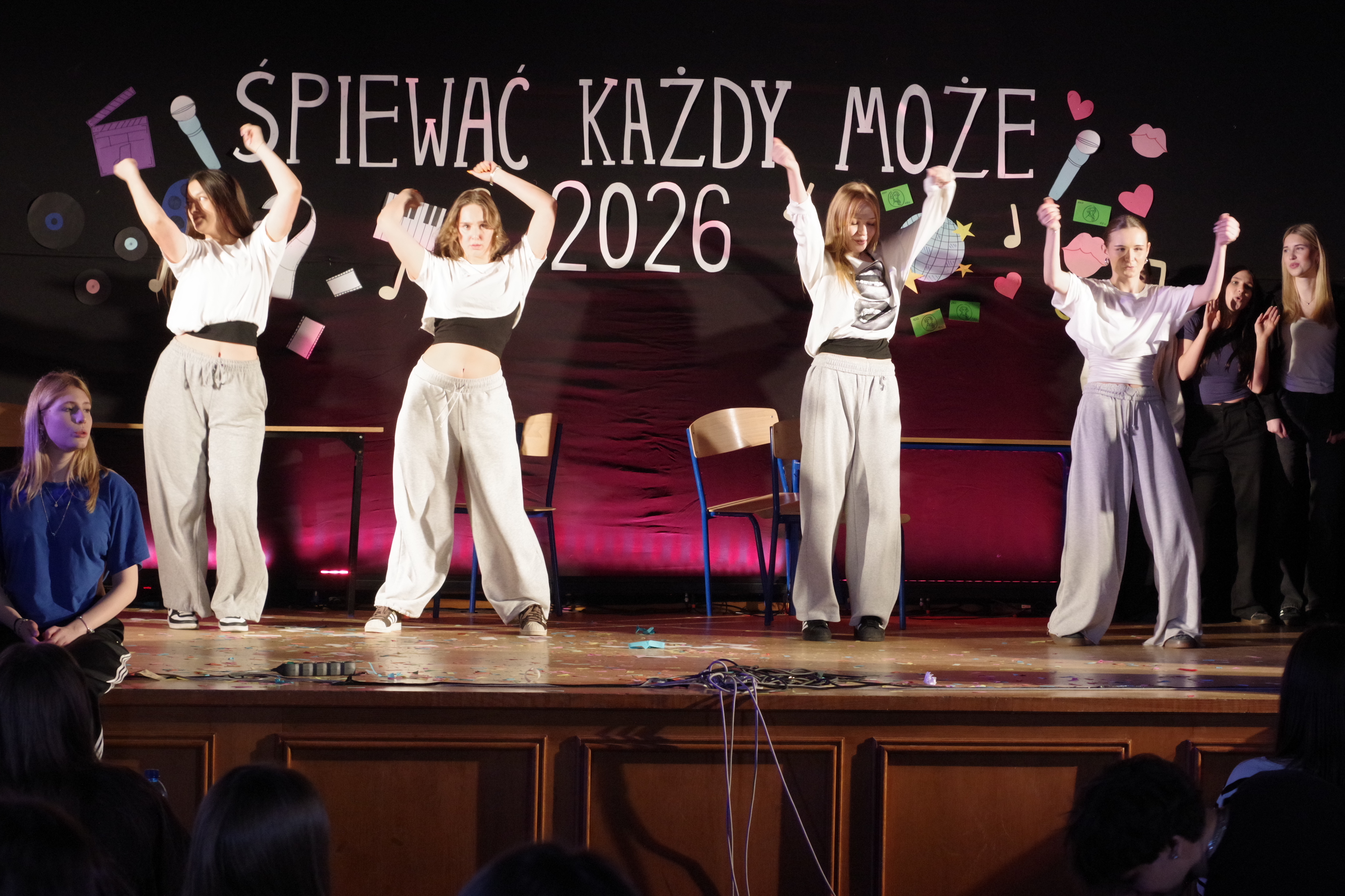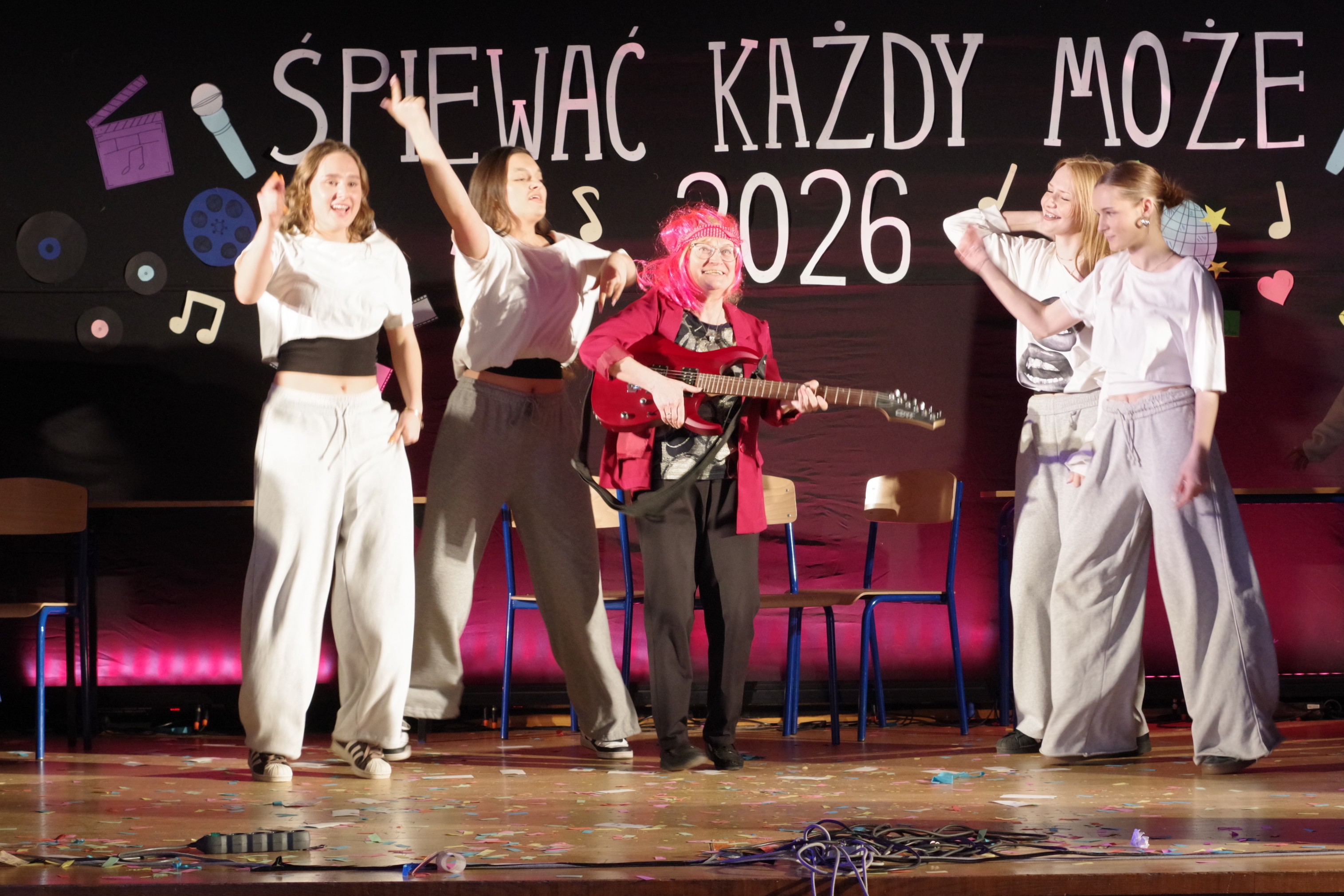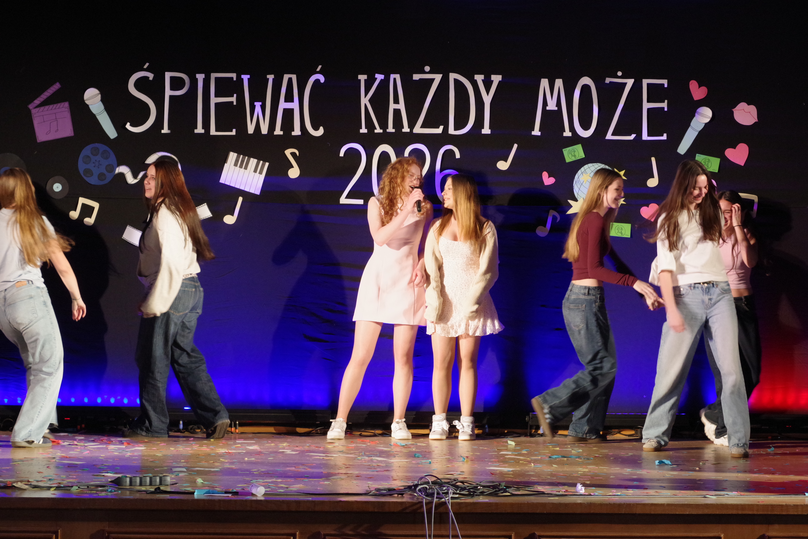 Następnie odbyły się występy uczniów w festiwalu „Śpiewać Każdy Może”, który od lat jest jedną z ulubionych szkolnych tradycji. W tym roku uczniowie zaprezentowali szeroki repertuar – od piosenek filmowych i bajkowych, po znane i lubiane utwory disco polo. Pojawiły się piosenki takie jak „Przekorny Los”, „Mama Ostrzegała”, „Eye of the Tiger” czy „Shake it off”.  Występy były pełne energii, pomysłowości oraz zaangażowania, a publiczność nagradzała wykonawców gromkimi brawami.