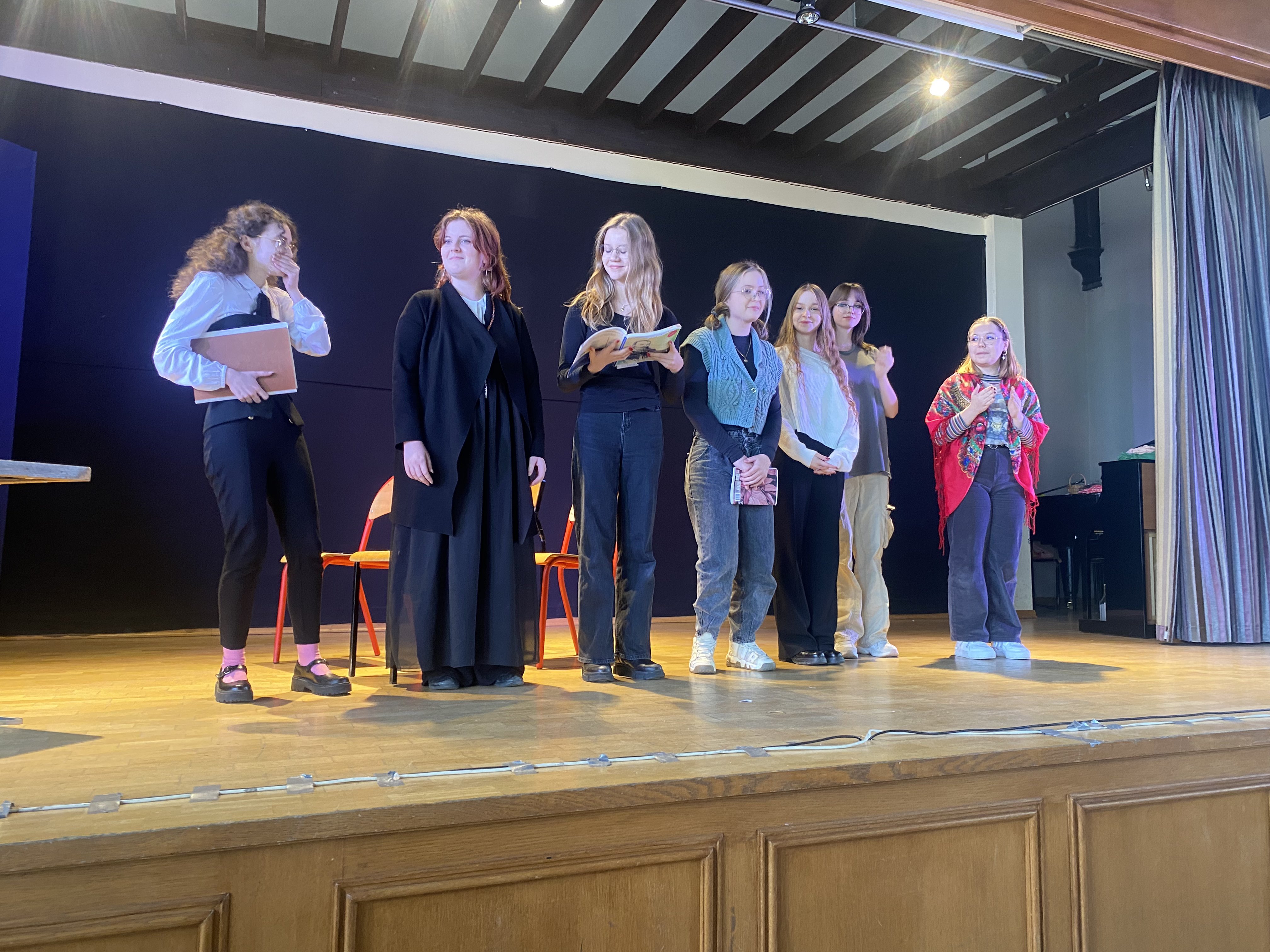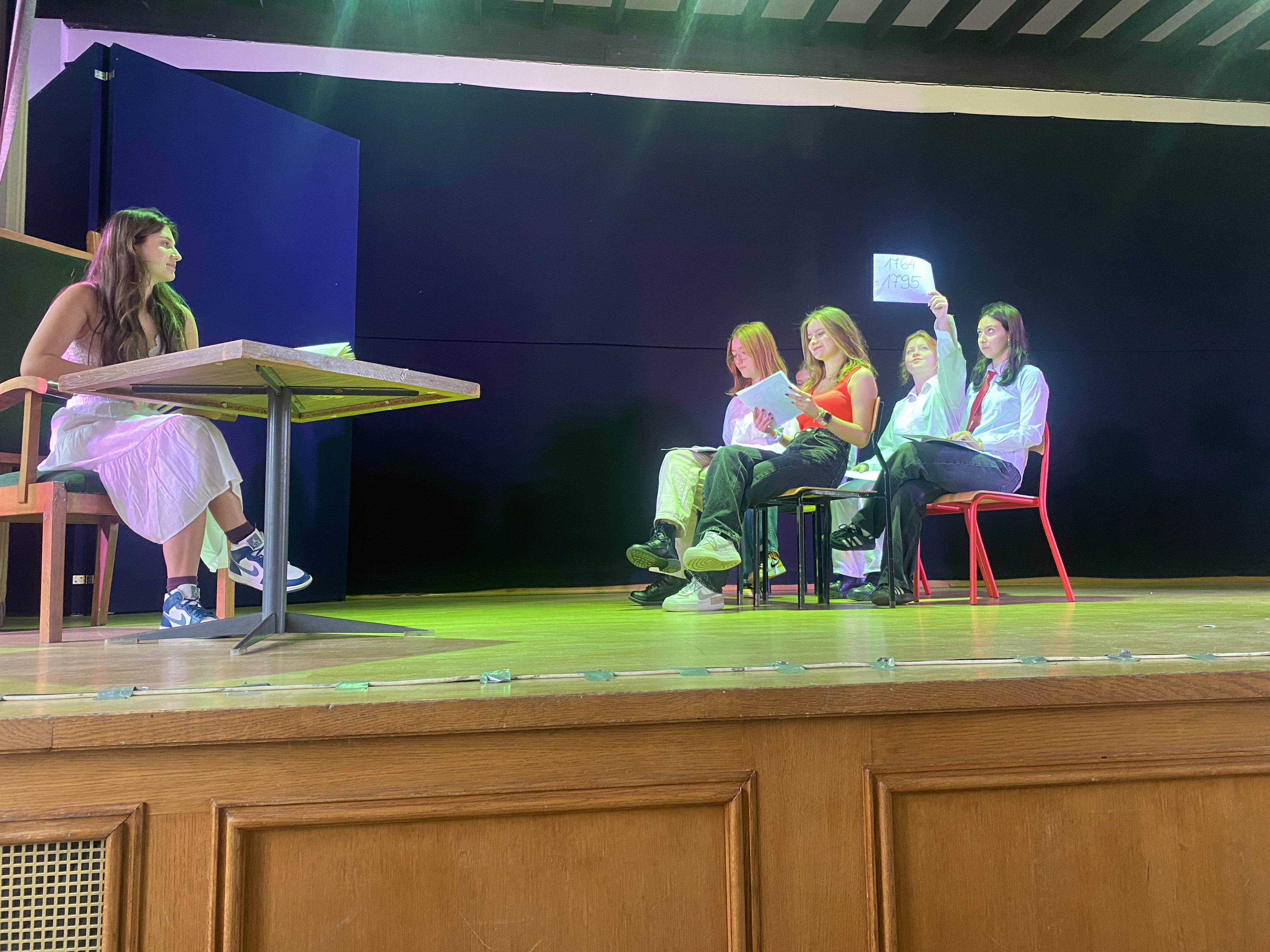 Uczniowie klas 2d i 2c poznali wiek oświecenia drogą dramy. Tworzyli scenariusze do widowiska, które opierały się na wytycznych ustalonych przez nauczyciela prowadzącego zajęcia. Następnie zapoznali się z tłem historycznym epoki, filozofią, ideami i cechami obowiązującymi w literaturze i sztuce, a potem czytali teksty literackie. Kolejnym etapem zmagań był przydział ról dla każdego członka grupy, ustalenie scenografii, kostiumów, rekwizytów. Finalnym krokiem stała się prezentacja widowiska przed klasą. Wszystko obywało się w auli szkoły, gdzie uczniowie do dyspozycji zawsze mają scenę, sprzęt nagłaśniający, oświetlenie.
