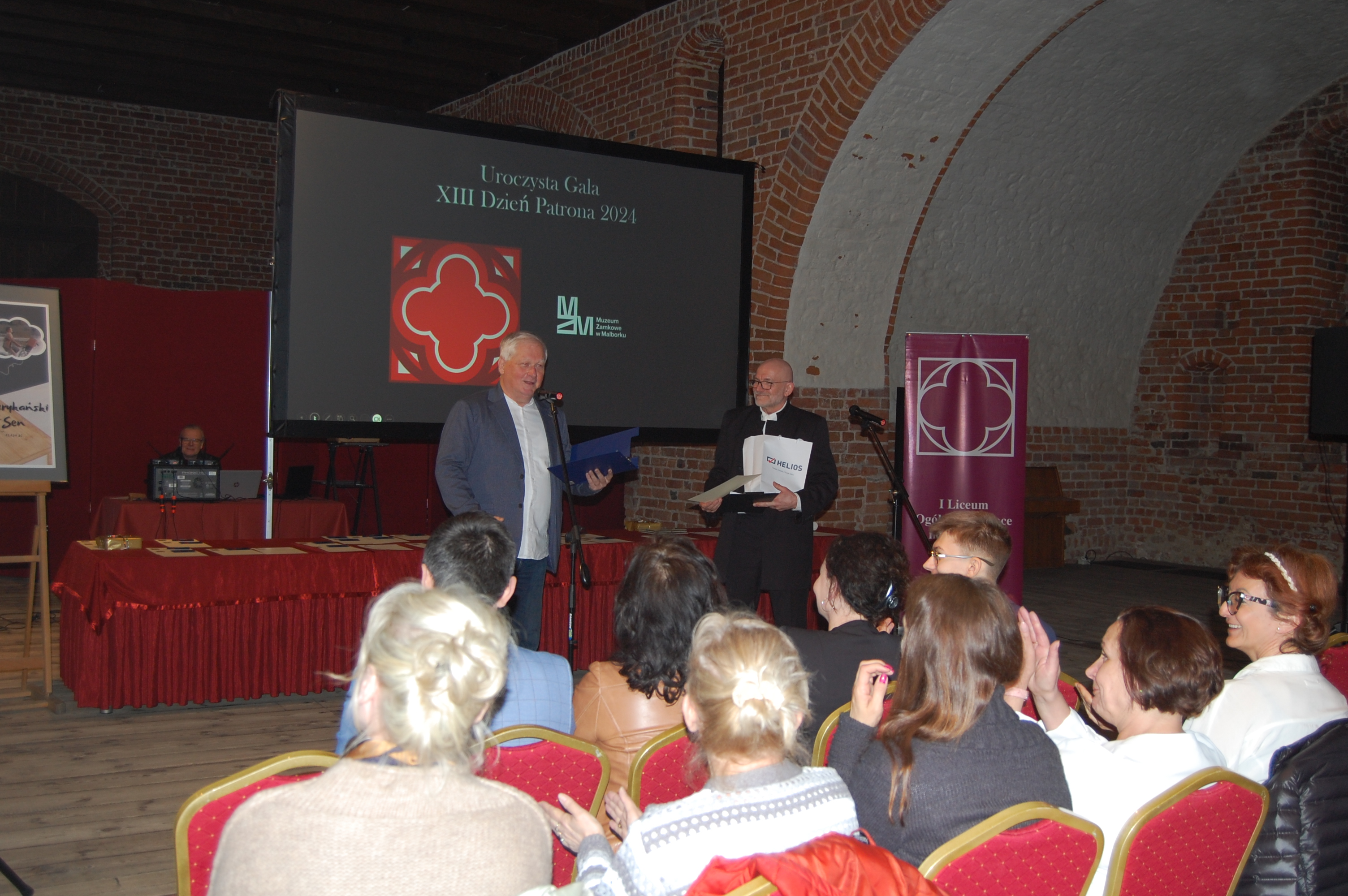 Wreszcie nadszedł wyczekiwany dzień. W południe spotkaliśmy się na konferencji, podczas której mogliśmy obejrzeć przygotowane prezentacje oraz wysłuchać wielu przemówień. Na uroczystość, połączoną z trzydziestoleciem pracy obecnego dyrektora muzeum przybyło wielu gości, także z zagranicy. Następnie przyszła kolej na naszą inscenizację- budowę zamku. Pracownicy muzeum: pan Tomasz Bogdanowicz oraz pan Arkadiusz Dzikowski, w strojach odzwierciedlających czasy krzyżackie i polskie na zamku, poprowadzili narrację. My, na umówiony znak ustawialiśmy się w wyznaczonych wcześniej miejscach, ,,budując” w ten sposób Zamek Wysoki, Gdanisko, Pałac Wielkich Mistrzów i cały Zamek Średni. Na koniec, gestem wyciągniętych w górę rąk oraz gromkim okrzykiem, pozdrowiliśmy zabytki z całego świata, będące częścią rodziny UNESCO. Całe wydarzenie było transmitowane online do różnych części świata.