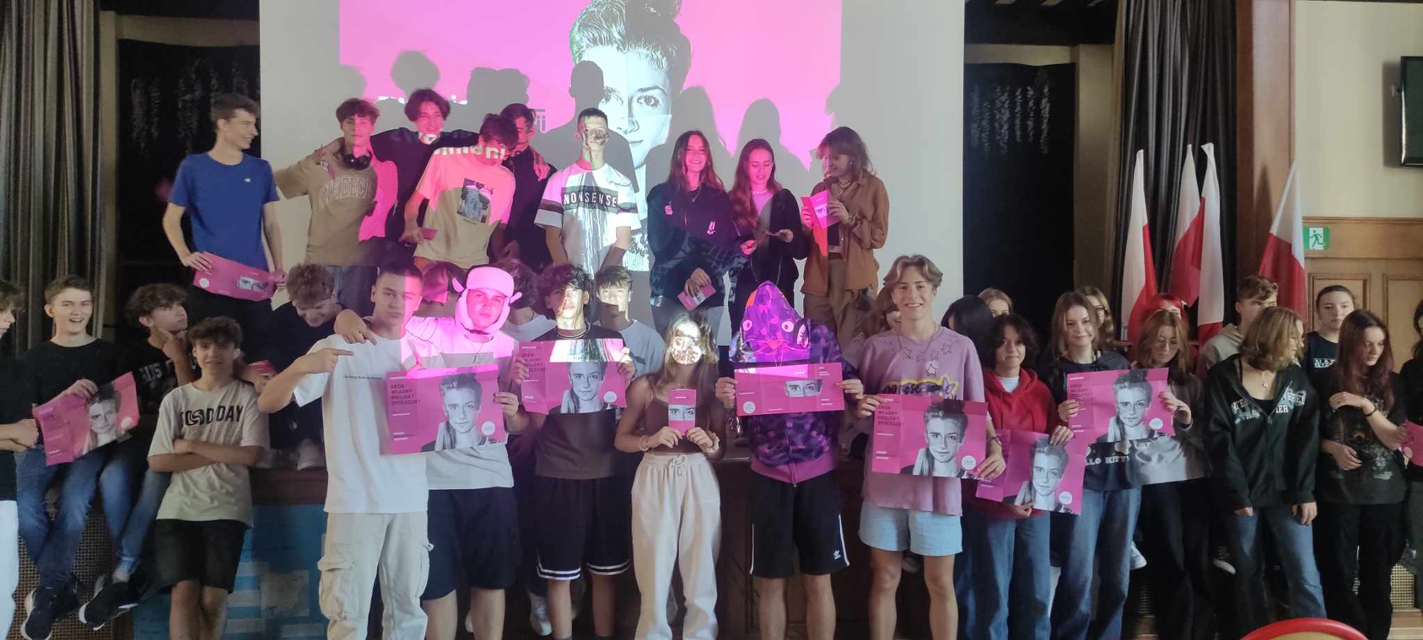 Było to wielkie przedsięwzięcie, angażujące prawie 200 młodych osób z naszej szkoły. Przed uroczystością odbyły się trzy próby. Pierwsza miała miejsce w naszej sali gimnastycznej. Był to najdłuższy i najbardziej wymagający etap przygotowań. Zostaliśmy podzieleni na grupy, z których wyłoniono liderów odpowiedzialnych za odpowiednie ustawienie koleżanek i kolegów. Musieliśmy wykazać się nie lada dyscypliną i cierpliwością, ale zdecydowanie było warto.